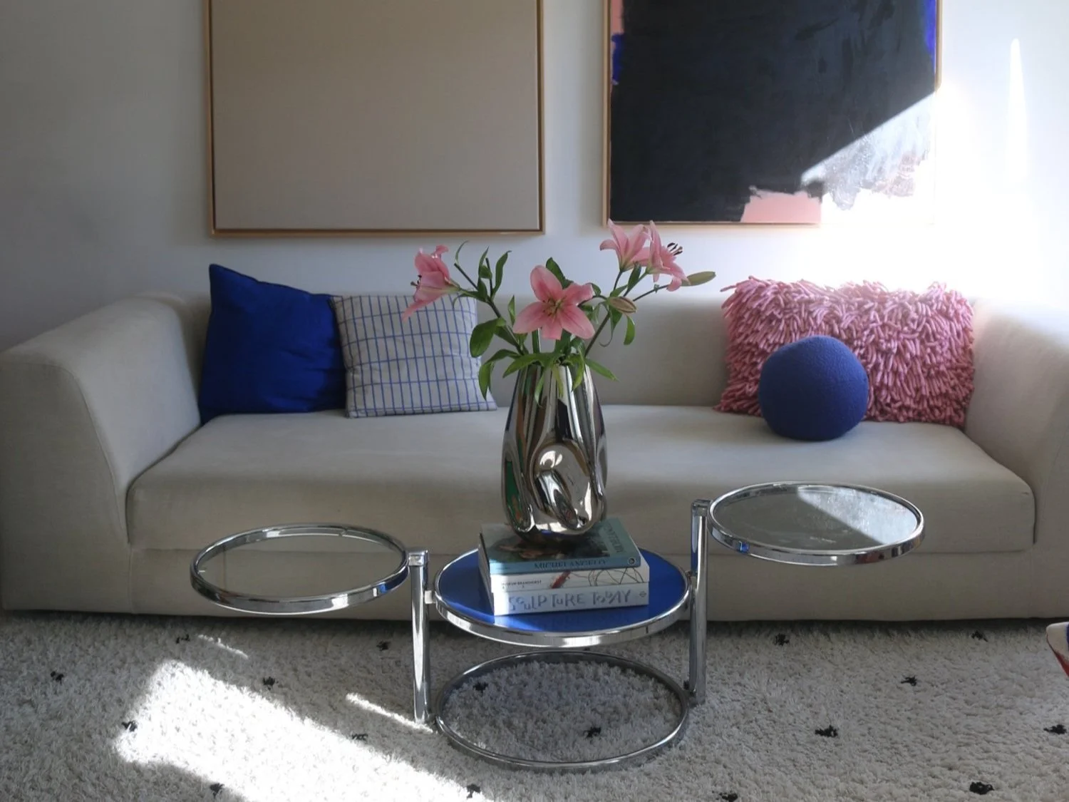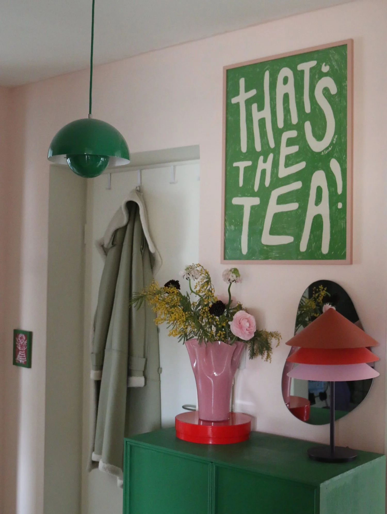Katharinas Zuhause ist eine lebendige Bühne: Es ist bunt, verspielt und befindet sich in ständiger Veränderung. Lieblingsstücke wie ihr Couchtisch von Milo Baughman – ein eBay-Kleinanzeigen-Fund mit Geschichte – begleiten sie durch den Alltag. Ihr Ansatz zum Wohnen ist dabei intuitiv und emotional geprägt: